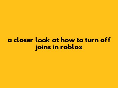 A Closer Look At How To Turn Off Joins In Roblox