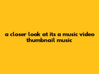A Closer Look At Its A Music Video Thumbnail Music