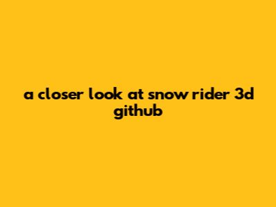 A Closer Look At Snow Rider 3d Github