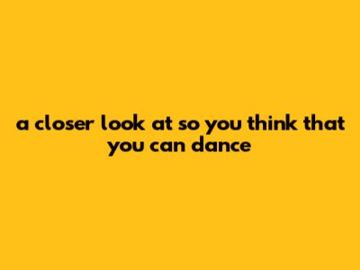 A Closer Look At So You Think That You Can Dance