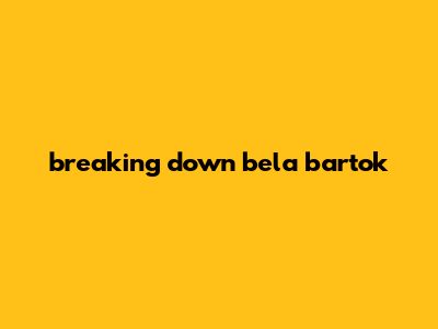 Breaking Down Bela Bartok