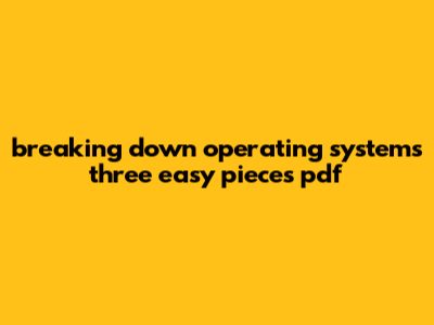 Breaking Down Operating Systems Three Easy Pieces Pdf
