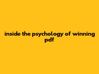 Inside The Psychology Of Winning Pdf