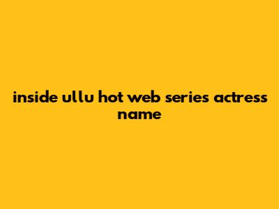 Inside Ullu Hot Web Series Actress Name