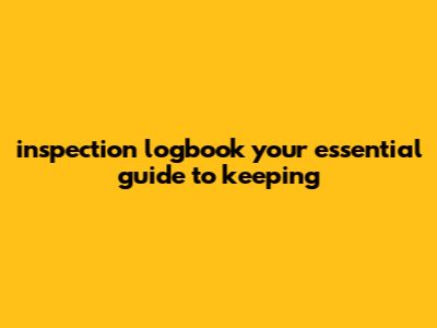 Remember, every detail matters when it comes to inspections. Taking the time to fill out each entry carefully will pay off in the long run. So, let’s dive deeper into the importance of this tool and discover how it can elevate your operations. With the right approach, your inspection logbook can become a cornerstone of your success.