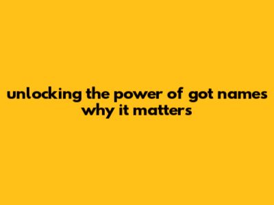 Unlocking The Power Of *Got Names* – Why It Matters